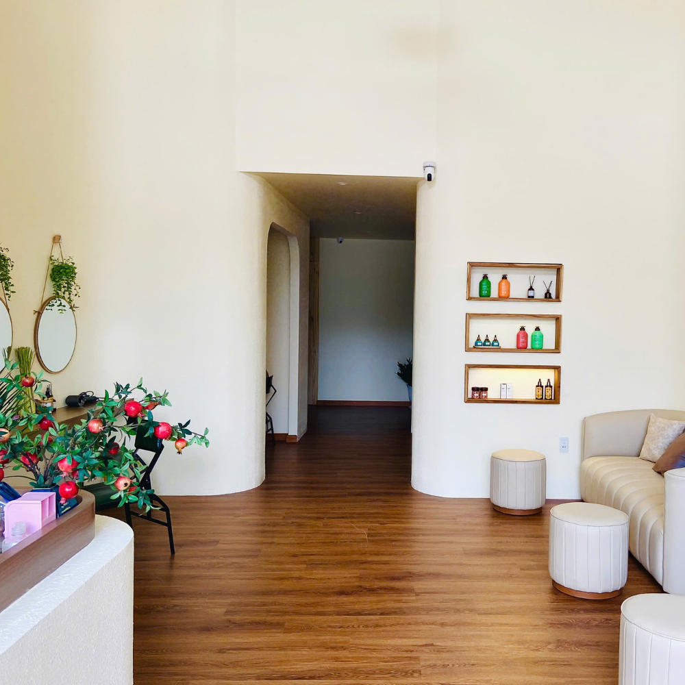 Từ mọi góc độ bên trong Spa bạn đều có thể nhìn thấy không gian xanh xung quanh. Tăng sự thư giãn trong thời gian nghỉ ngơi của khách hàng, được thiết kế với kiểu dáng đơn giản, dễ nhìn và riêng tư. Ngoài ra còn có bãi đậu xe rộng rãi, thuận tiện.